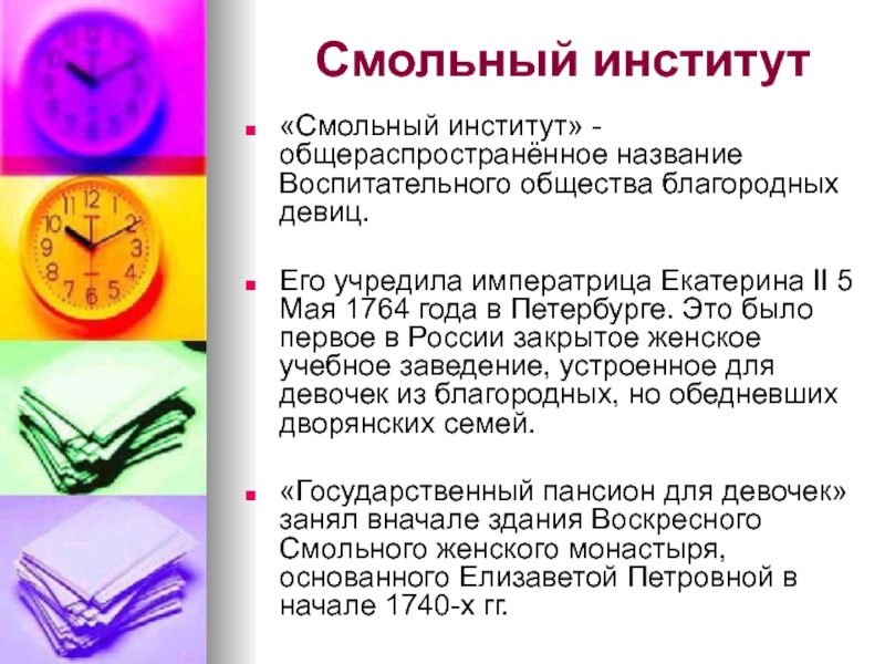 «Смольный институт» -общераспространённое название Воспитательного общества благородных