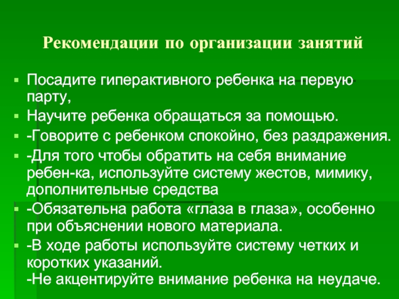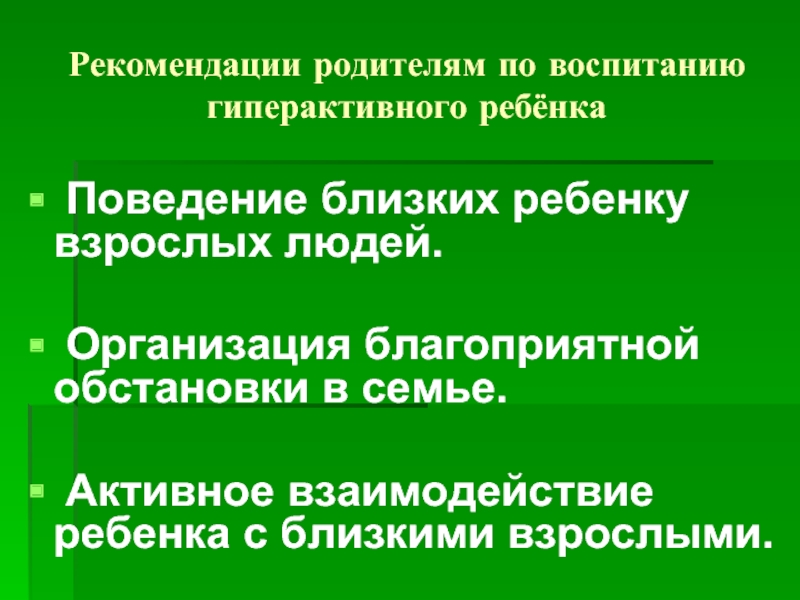 Слайд 19Рекомендации родителям по воспитанию гиперактивного ребёнка