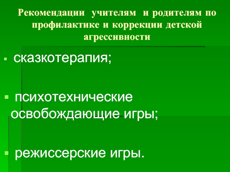 Слайд 20Рекомендации учителям и родителям по профилактике и коррекции детской агрессивности