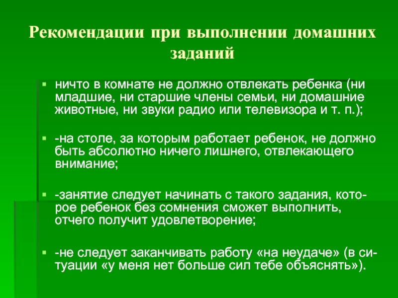 -не следует заканчивать работу «на неудаче» (в ситуации «у меня нет больше сил тебе объяснять»).