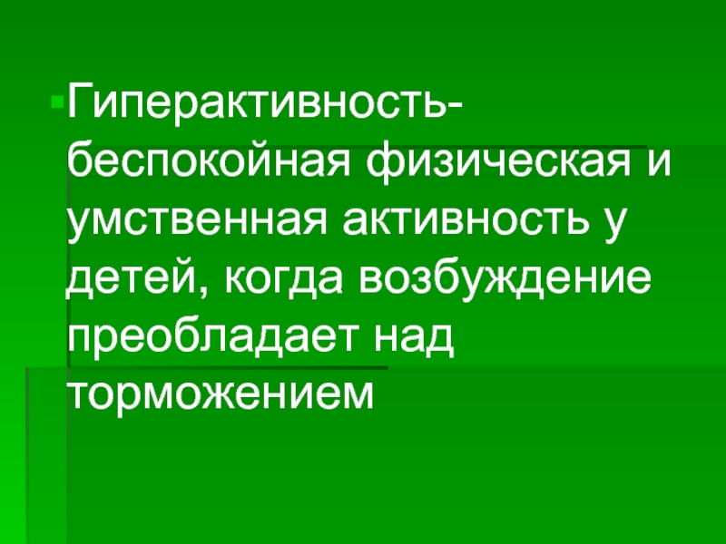 Гиперактивность- беспокойная физическая и умственная активность у детей, когда возбуждение