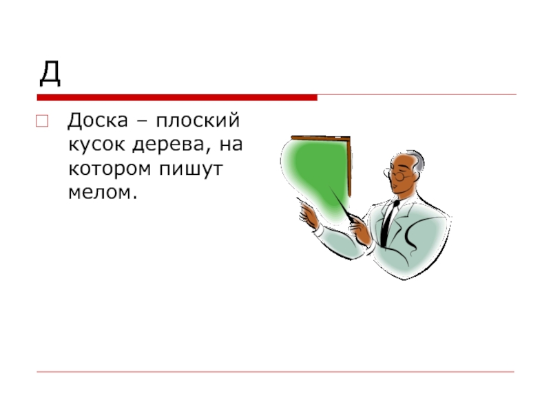 Доска – плоский кусок дерева, на котором пишут мелом.
