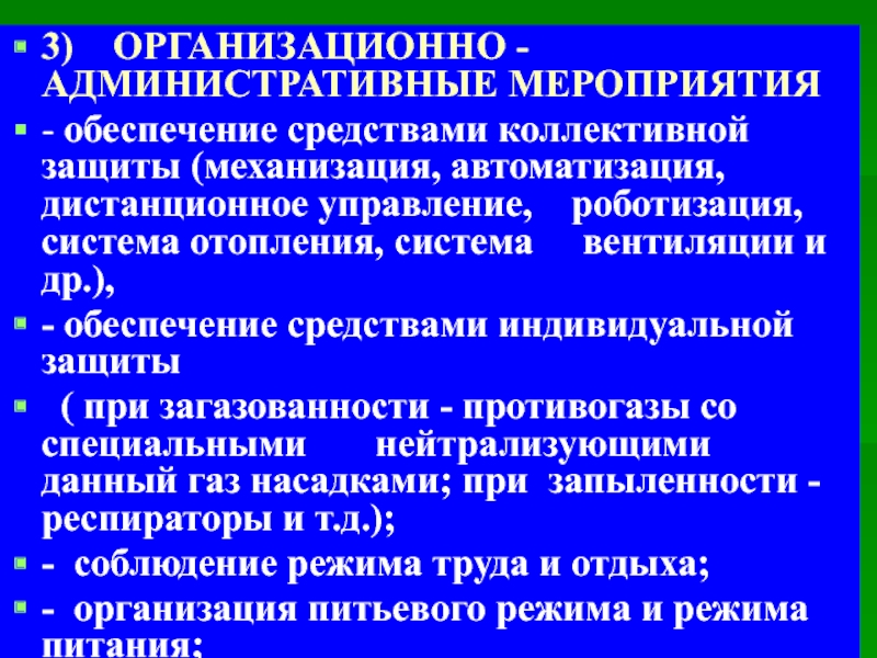 Слайд 31МЕРОПРИЯТИЯ ПО ЗАЩИТЕ ОТ ВРЕДНЫХ ПРОИЗВОДСТВЕННЫХ ФАКТОРОВ