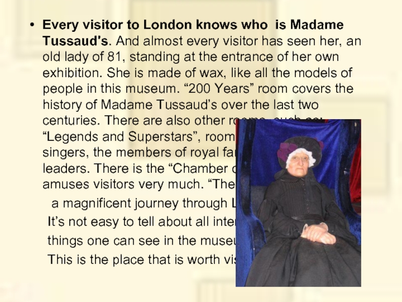 Слайд 5Every visitor to London knows who is Madame Tussaud's. And almost