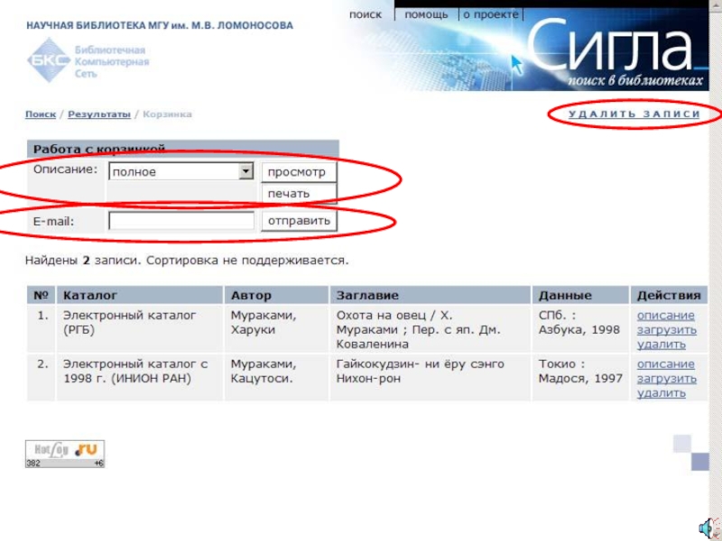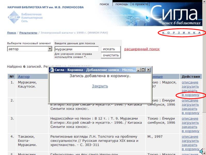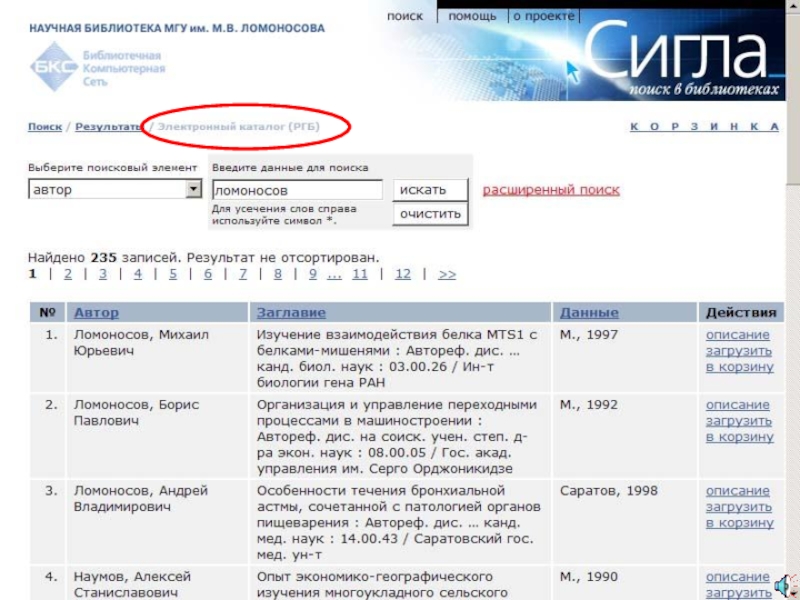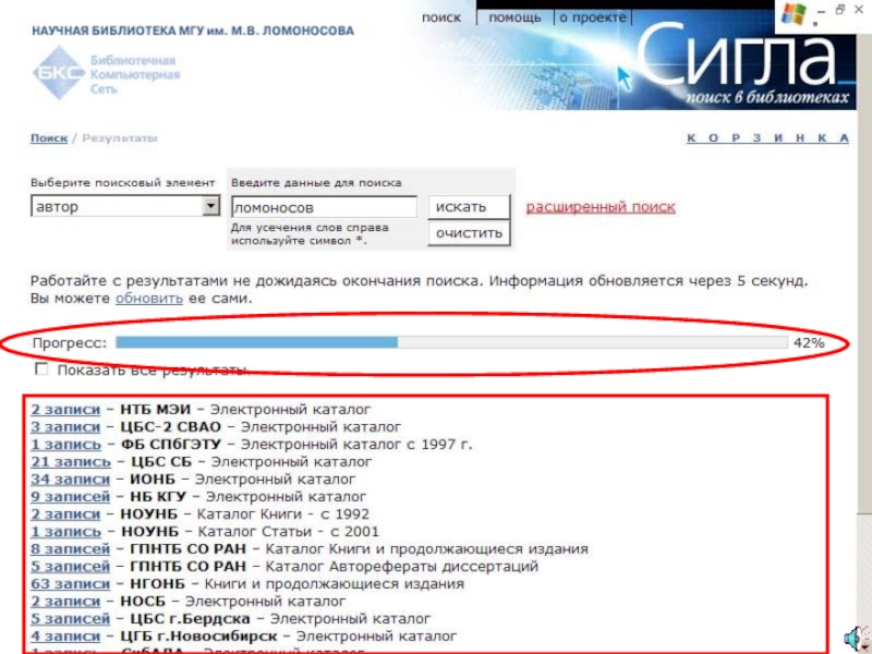 Предоставление доступа к электронным каталогам библиотек России и зарубежных