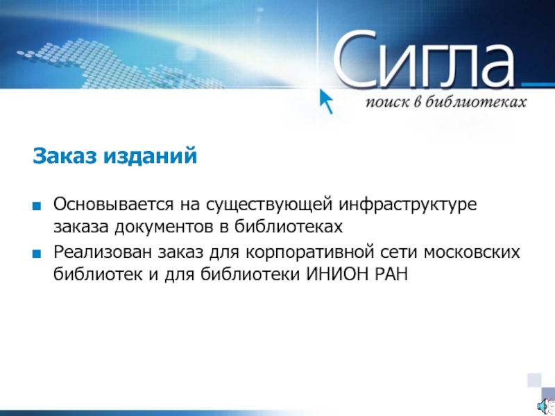 корпоративной сети московских библиотек и для библиотеки ИНИОН РАН