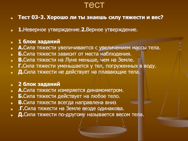 Тест 03-3. Хорошо ли ты знаешь силу тяжести и вес?