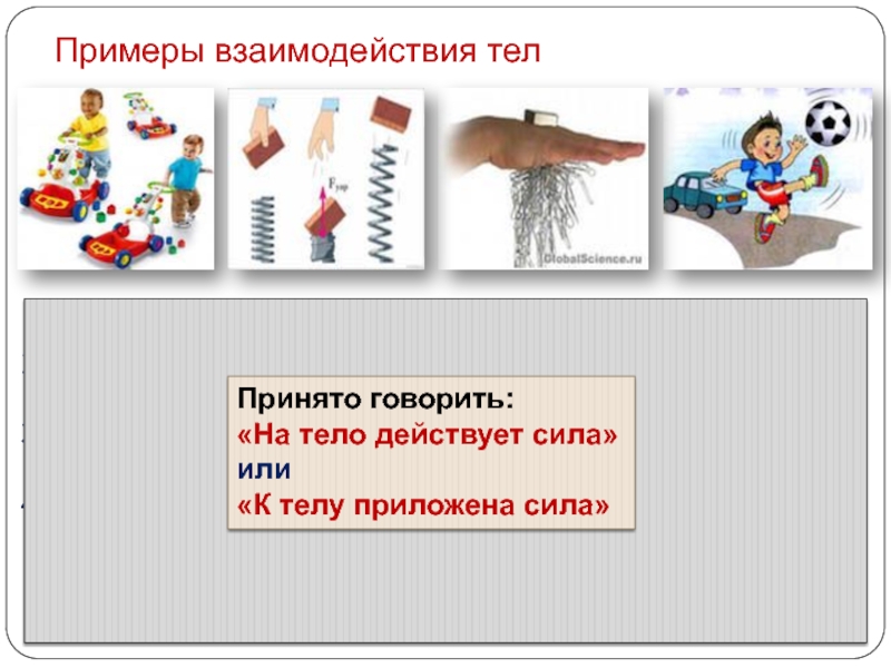 Вывод: скорость тела меняется при взаимодействии его с другими телами.