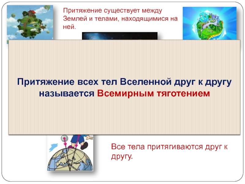Притяжение всех тел Вселенной друг к другу называется Всемирным тяготением