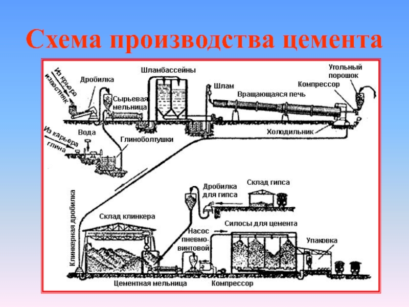В настоящее время цемент получают сильным прокаливанием смеси известняка и глины
