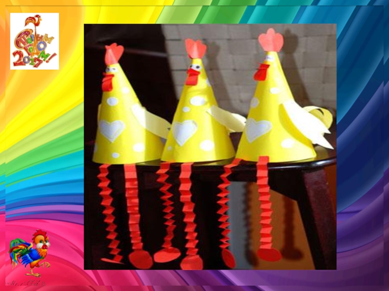 Слайд 8Для клюва – вырежьте две разноцветных бумажных полоски. Одну на клюв, а