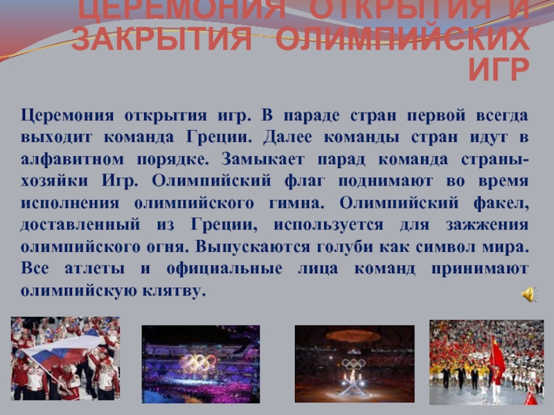 ЦЕРЕМОНИЯ ОТКРЫТИЯ И ЗАКРЫТИЯ ОЛИМПИЙСКИХ ИГР