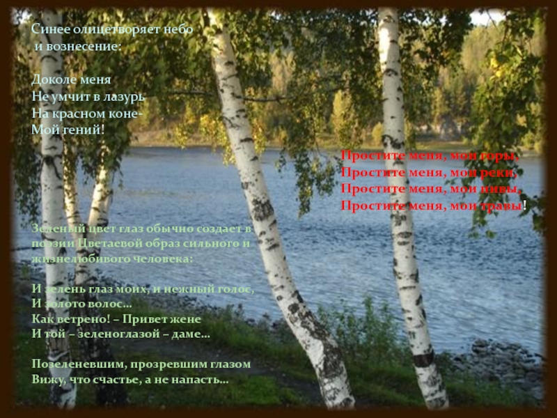 Зеленый цвет глаз обычно создает в поэзии Цветаевой образ сильного и жизнелюбивого человека: