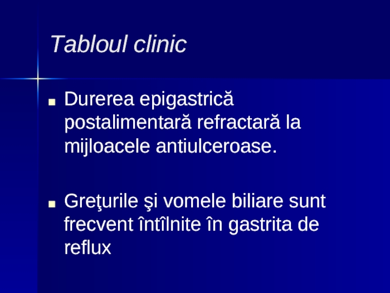 Слайд 28Sindroamele clinice şi paraclinice în afecţiunile tractului gastro- intestinal