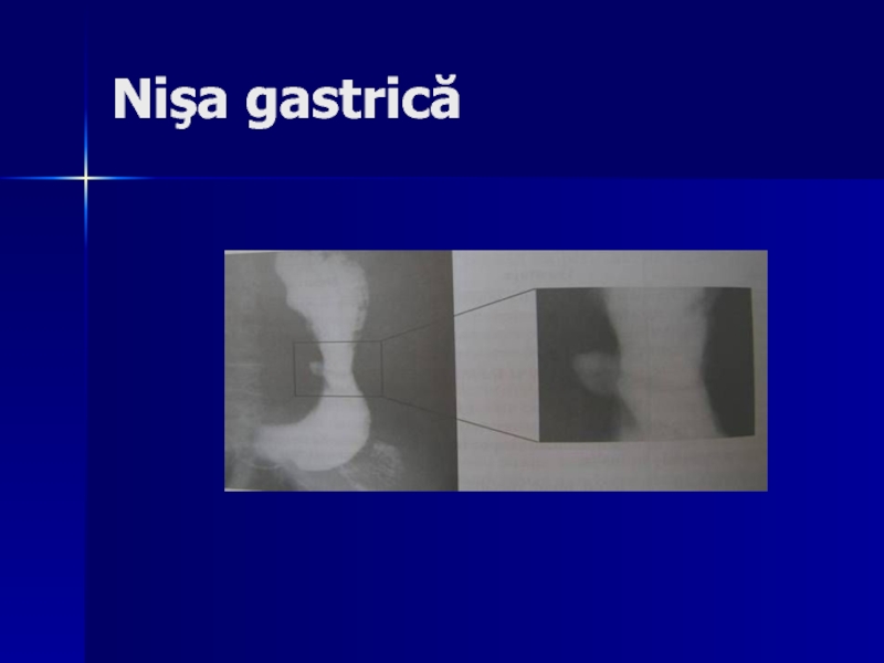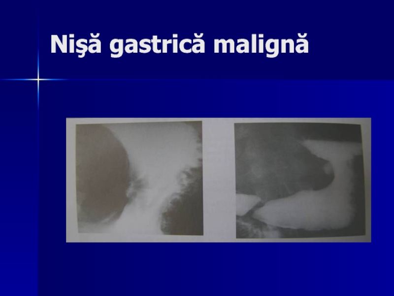 ulcerativă - ca nişă, de obicei neregulată (nişa are bază largă de implantare, peretele gastric din jurul ei poate fi infiltrat, rigid, iar pliurile gastrice se opresc la distanşă de nişă).
