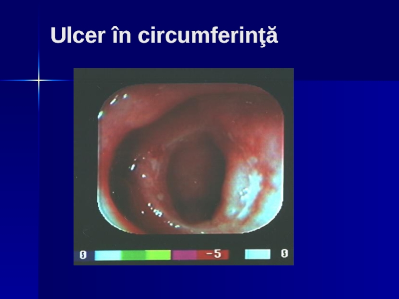 Endoscopic – se evidenţiază craterul ulceros de diverse forme şi dimensiuni,