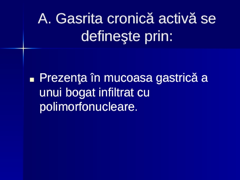 Gastrita fundică (tipul A) ocupă corpul şi fundul gastric.
