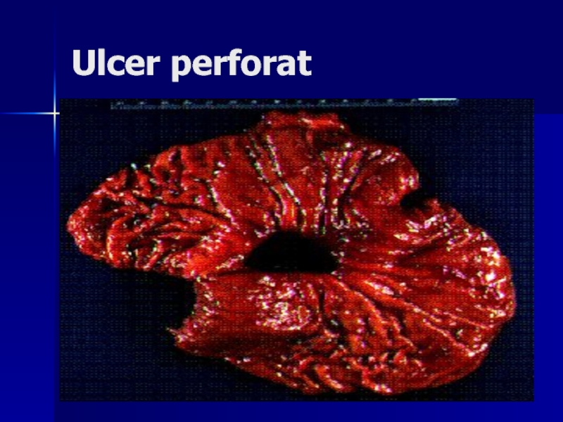 Слайд 126Perforaţia realizează revărsarea conţinutului gastric în cavitatea peritonială
