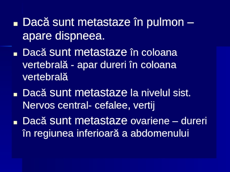 Dacă sunt metastaze la nivelul sist. Nervos central- cefalee, vertij
