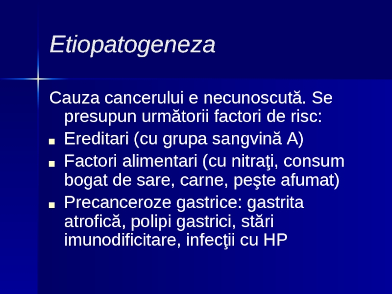 Factori alimentari (cu nitraţi, consum bogat de sare, carne, peşte afumat)