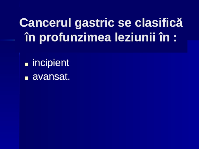Слайд 136Cancerul gastric se clasifică în profunzimea leziunii în :
