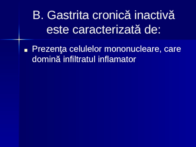 Gastrită antrală (tipul B) este localizată la nivelul antrului şi e legată de infecţia cu Helicobacter pylori.