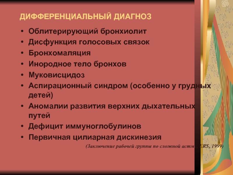 (Заключение рабочей группы по сложной астме, ERS, 1999)