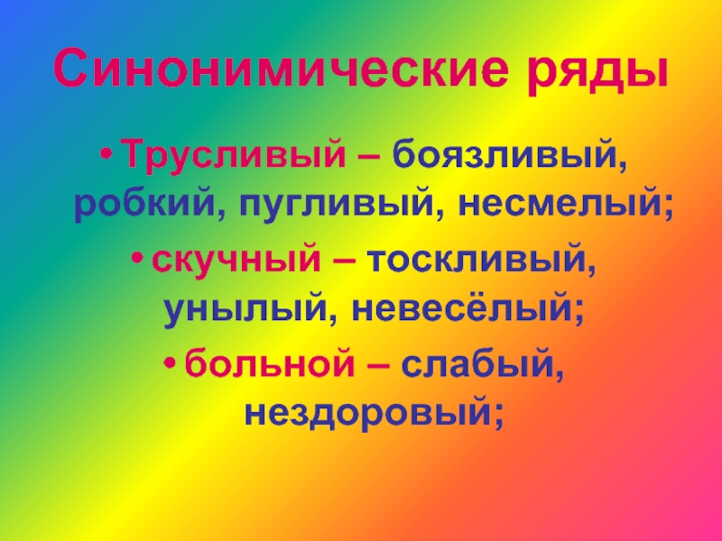 Слайд 13Синонимические ряды
