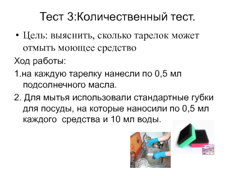 Слайд 37Тест 2: Эффективность действия моющих средств