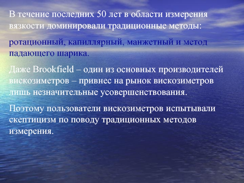 Слайд 8В течение последних 50 лет в области измерения вязкости доминировали традиционные