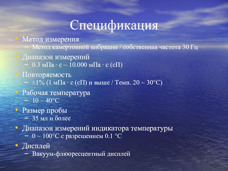 Измерения возможны в широком диапазоне вязкости: от 0.3 до 10.000 мПа ∙ с.