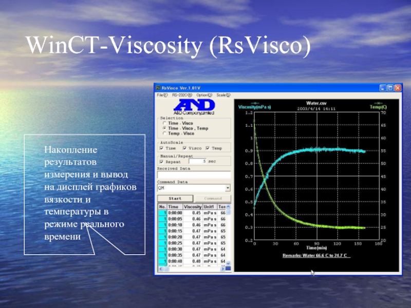 WinCT-Viscosity позволяет получать графики вязкости и температуры в режиме реального времени.