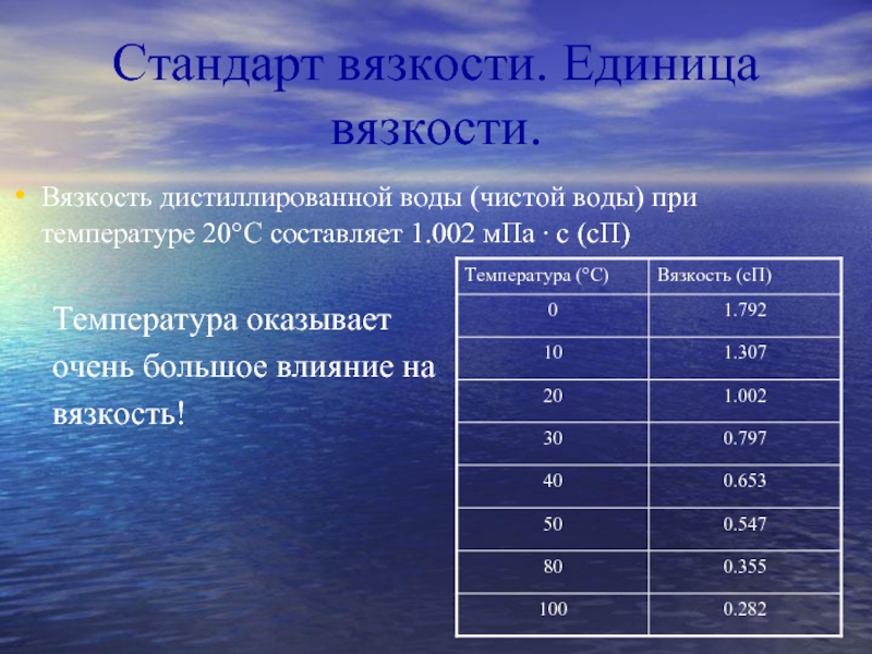 Слайд 6Стандарт вязкости. Единица вязкости.