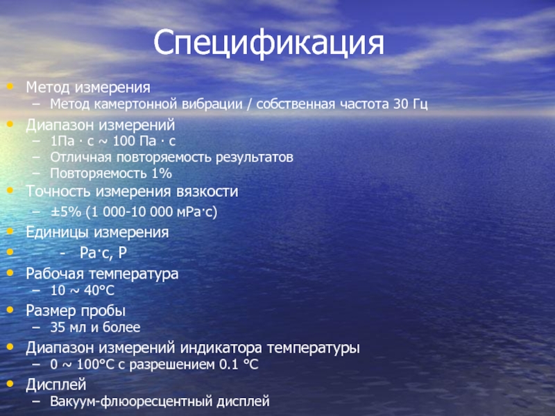 ±1% (1 мПа ∙ с (сП) и выше / Темп. 20 ~ 30°С)