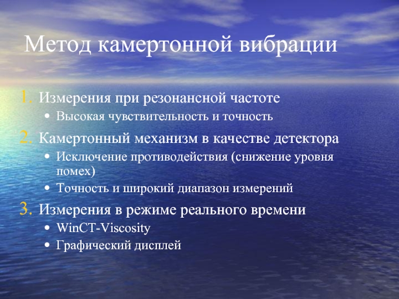 Другими словами, при постоянном движущем токе амплитуда в точках резонанса достигает максимального значения. Следовательно наиболее точные измерения вязкости могут быть сделаны в резонансных точках.