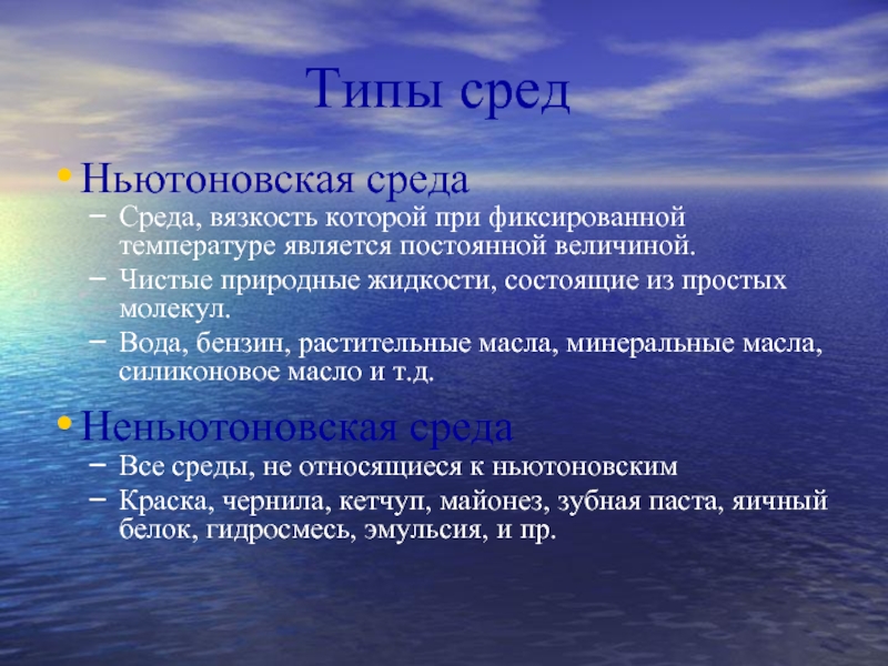 Среда, вязкость которой при фиксированной температуре является постоянной величиной.