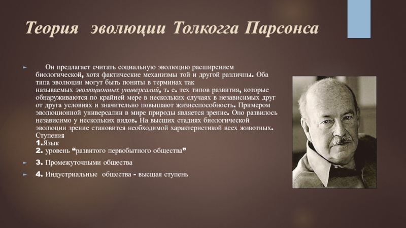 Слайд 7Теория эволюции Толкогга Парсонса