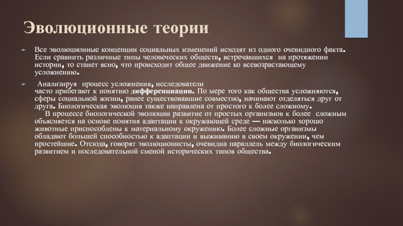 Слайд 4Эволюционные теории