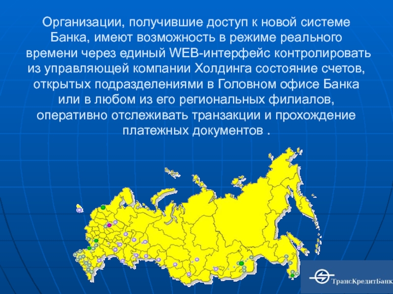Слайд 2Для корпоративных клиентов с территориально и организационно распределенной структурой ТрансКредитБанк предлагает