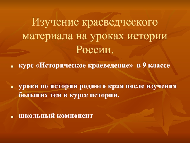 опробован в историко – краеведческих классах в 2001 – 2005 годах