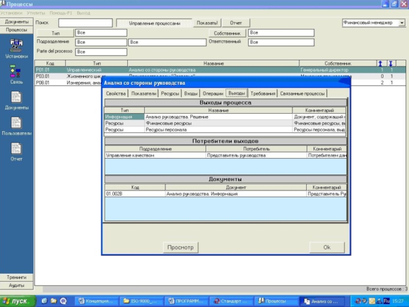 требования стандарта позволяет оперативно выделить процессы являющиеся «узкими местами» организации, которые структурированы, например, по имени владельца процесса или названию процесса и т.д.