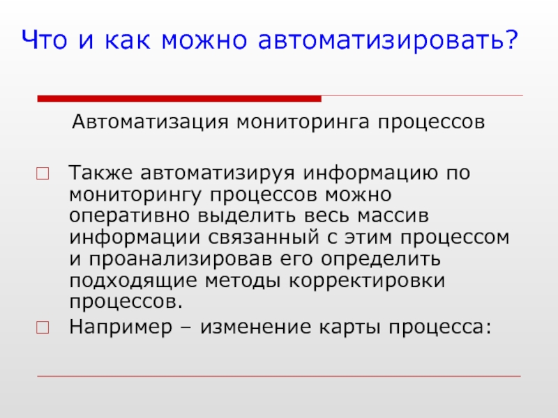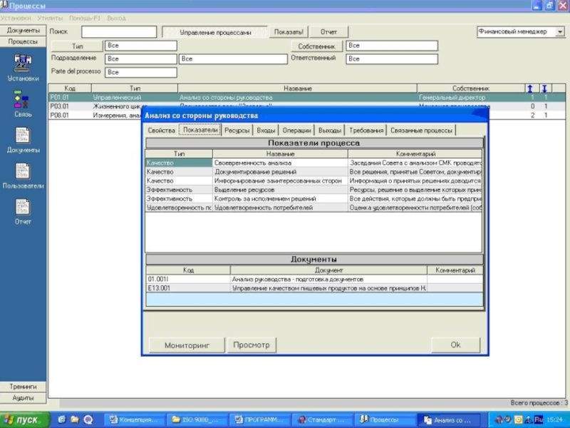 мониторингу процессов можно оперативно выделить весь массив информации связанный с этим процессом и проанализировав его определить подходящие методы корректировки процессов.