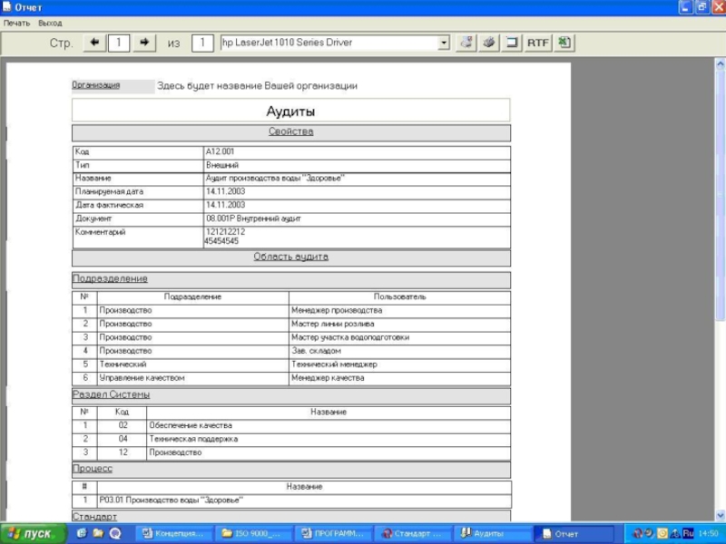 Автоматическое формирование годового (полугодового) отчета по результатам внутренних аудитов для анализа со стороны руководства с диаграммами возникновения несоответствий по элементам стандарта, подразделениям, направлениям деятельности и т.д.