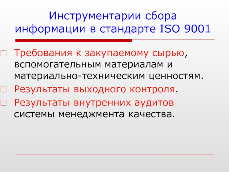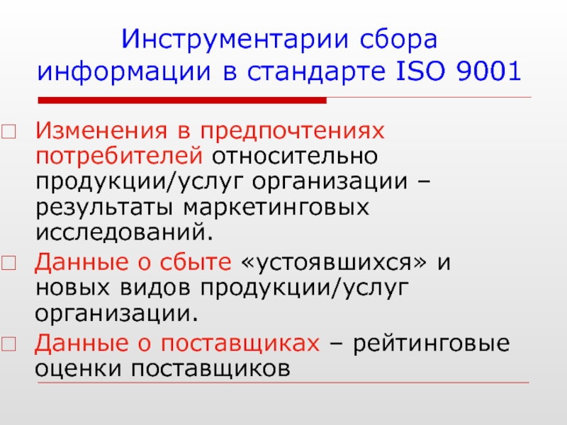 Слайд 2Инструментарии сбора информации в стандарте ISO 9001