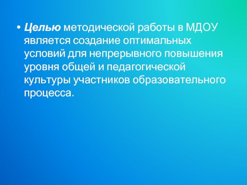 Слайд 3Целью методической работы в МДОУ является создание оптимальных условий для непрерывного