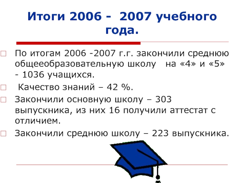 Слайд 3Итоги 2006 - 2007 учебного года.