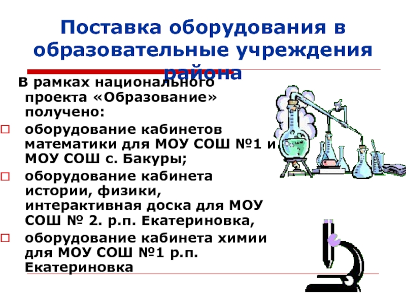 Слайд 5Поставка оборудования в образовательные учреждения района