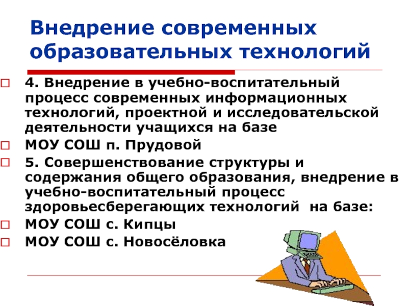 4. Внедрение в учебно-воспитательный процесс современных информационных технологий,