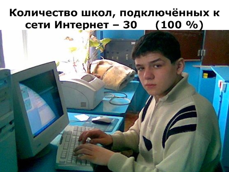 Слайд 11Количество школ, подключённых к сети Интернет – 30 (100