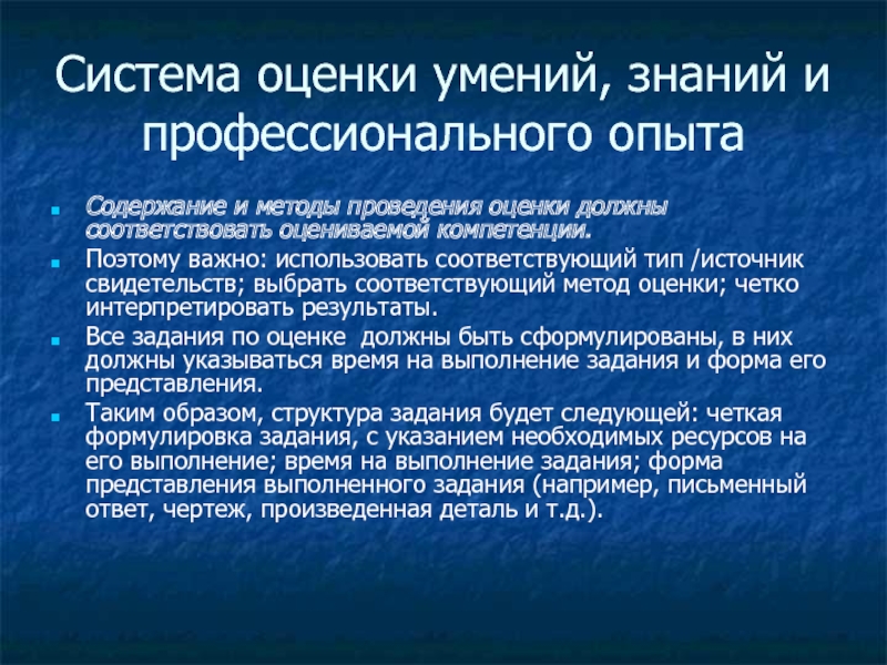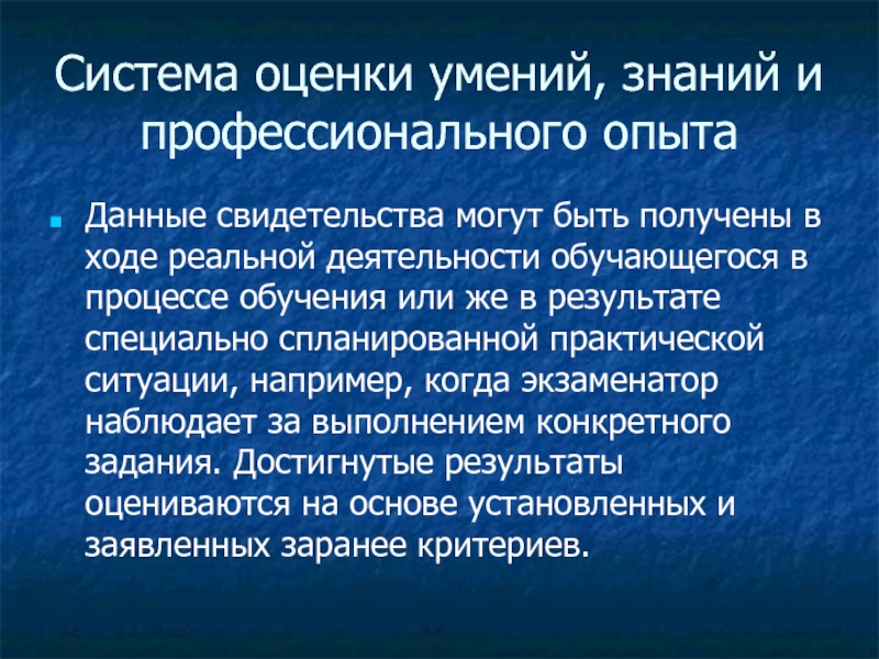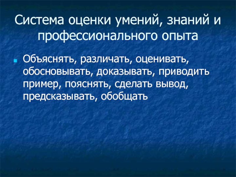 Слайд 1Система оценки умений, знаний и профессионального опыта